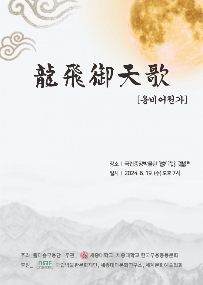 6월 19일(수) 오후 7시, 국립중앙박물관 ‘극장 용’에서 춤다솜무용단 주최, 극장용·세종대·세종대 한국무용총동문회 주관, 국립박물관문화재단·세종대다문화연구소·세계문화예술협회 후원, 박소정(한국무용 동문회장) 예술감독, 임정희 총연출의 「龍飛御天歌」(용비어천가, 이하 용비어천가)가 대규모 출연진과 호화스러운 무대로 지난해의 감동을 넘어설 예정이다. 두 번째 동문무용제 「용비어천가」가 선정한 작품과 구성은 음악과 의상, 조명 자체만으로도 동문을 비롯한 관객들을 설레게 하며 뜨거운 호응을 얻을 조짐을 보인다. 동문무용제는 춤 예술에 대한 열정과 바른 춤 철학을 지향하고 위대한 춤 스승의 정신을 이어받아 스승을 존중하고 전통춤을 경전이나 다름없는 스승으로 여긴다. 같은 맥락에서 동문을 서로 격려하며 전통춤 발전에 이바지하자는 뜻에서 동문무용제가 출범하였다. 지난해 「무구제(無求題)」에 이은 올해 「용비어천가」는 세종대 출신 한국 무용가라는 자부심으로 전통무용을 이어가는 선후배가 함께 만들어 가는 공연이 되었다. 일 년에 한 번 정도는 모교에 들려 서로의 소식을 전하고 위로와 격려를 하는 일은 적극 권장할 사안이다.