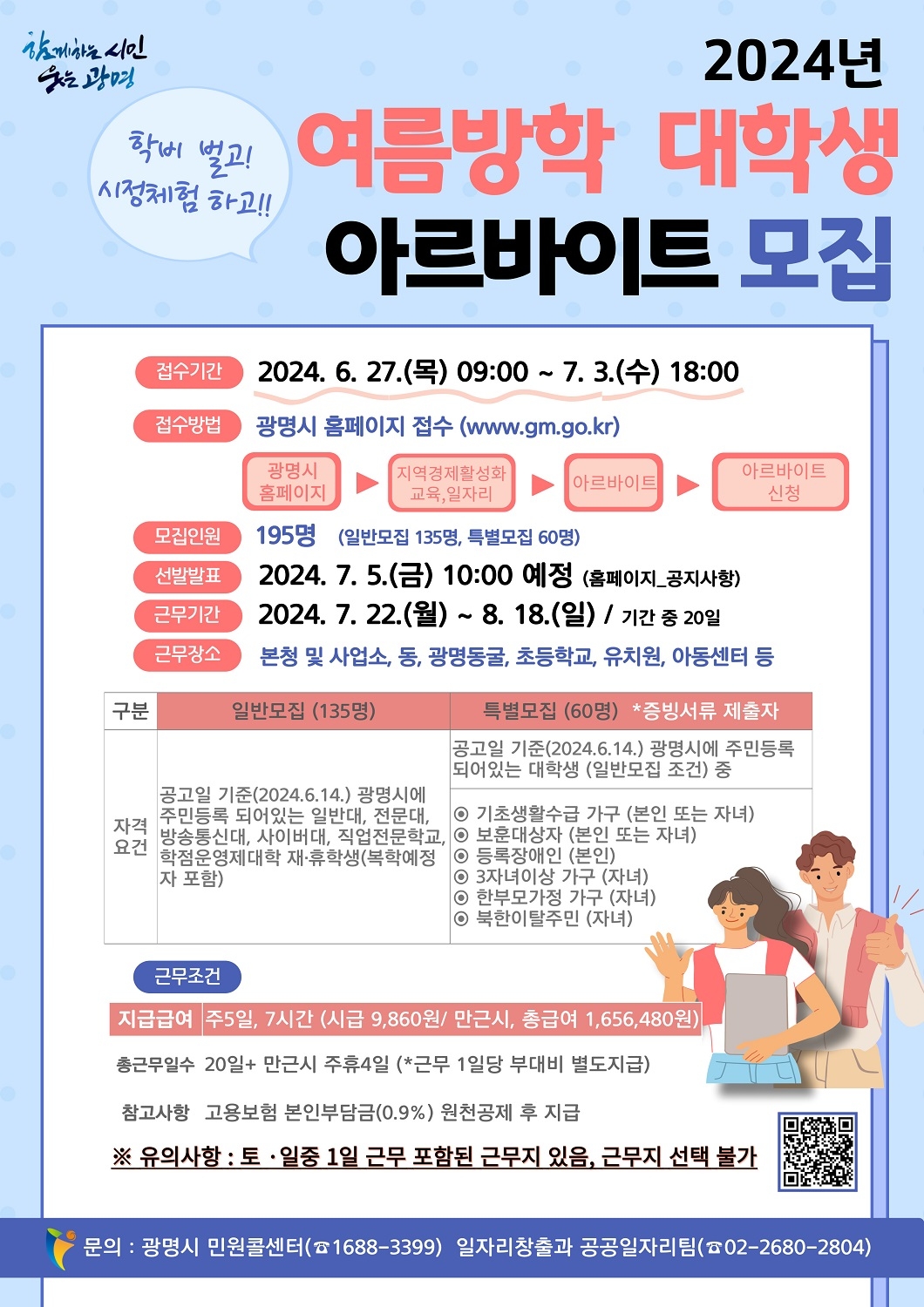 신청 자격은 2024년 14일 현재 광명시에 주민등록이 되어있는 4년제, 전문대, 방송통신대, 사이버대, 직업전문학교, 학점운영제대학의 재학생과 휴학생으로 참가 신청은 광명시청 누리집에서 하면 된다.