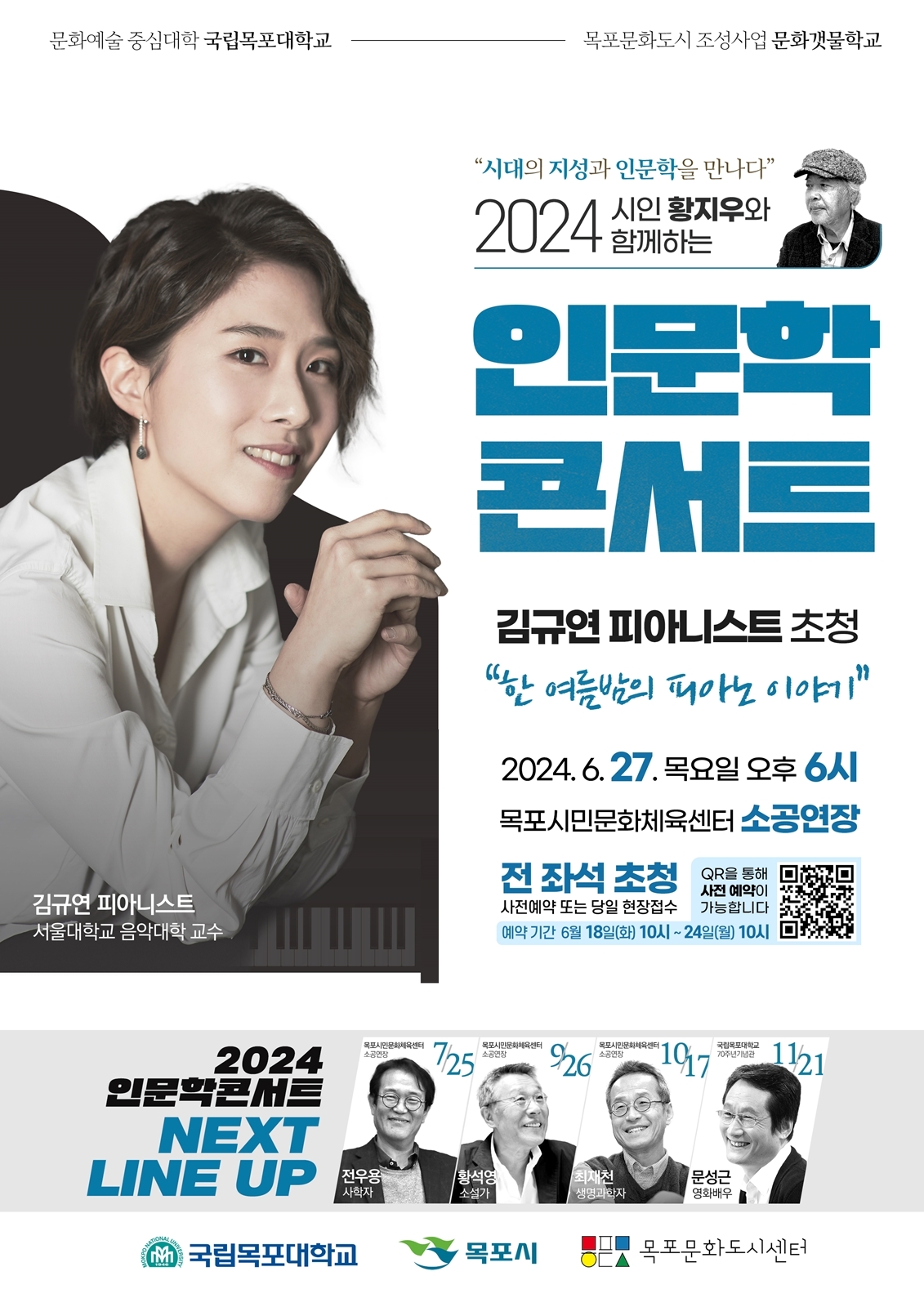 인문학 콘서트 전반을 이끄는 대담자 황지우 시인은 한국예술종합학교 총장을 역임했으며 주요 저서로는 '새들도 세상을 뜨는 구나', '나는 너다', '바깥에 대한 반가사' 등이 있다.
