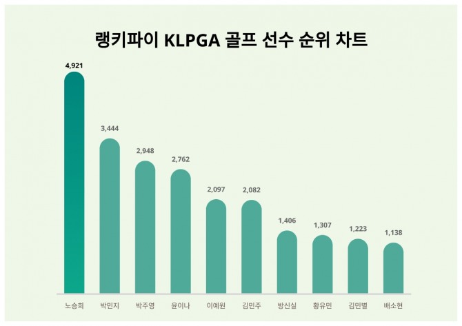 랭키파이는 6월 18일 KLPGA 골프 선수 트렌드지수 및 순위를 공개했다.
