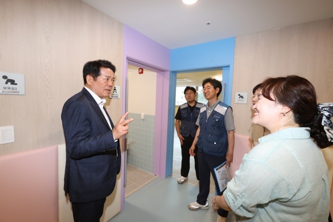 최 시장은 발코니 확장, 에어컨 설치 등 세대 내 시설물과 어린이 놀이터, 어린이집 등 돌봄 시설을 집중적으로 살펴봤다. 또 청년층의 선호도가 높은 라운지 카페, 체육시설, 어린이도서관 등 시설을 확인했다.