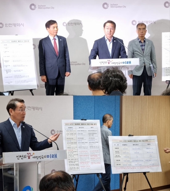 어어진 기자회견에서 유 시장은 2025년 아시아태평양경제협력체(APEC) 정상회의 개최지가 경북 경주시로 결정된 것과 관련해 유감이라고 했다. 인천은 지난 2022년부터 300만 시민의 마음을 하나로 모아 APEC 정상회의 인천 유치를 위해 모든 노력을 기울여 왔다는 것,