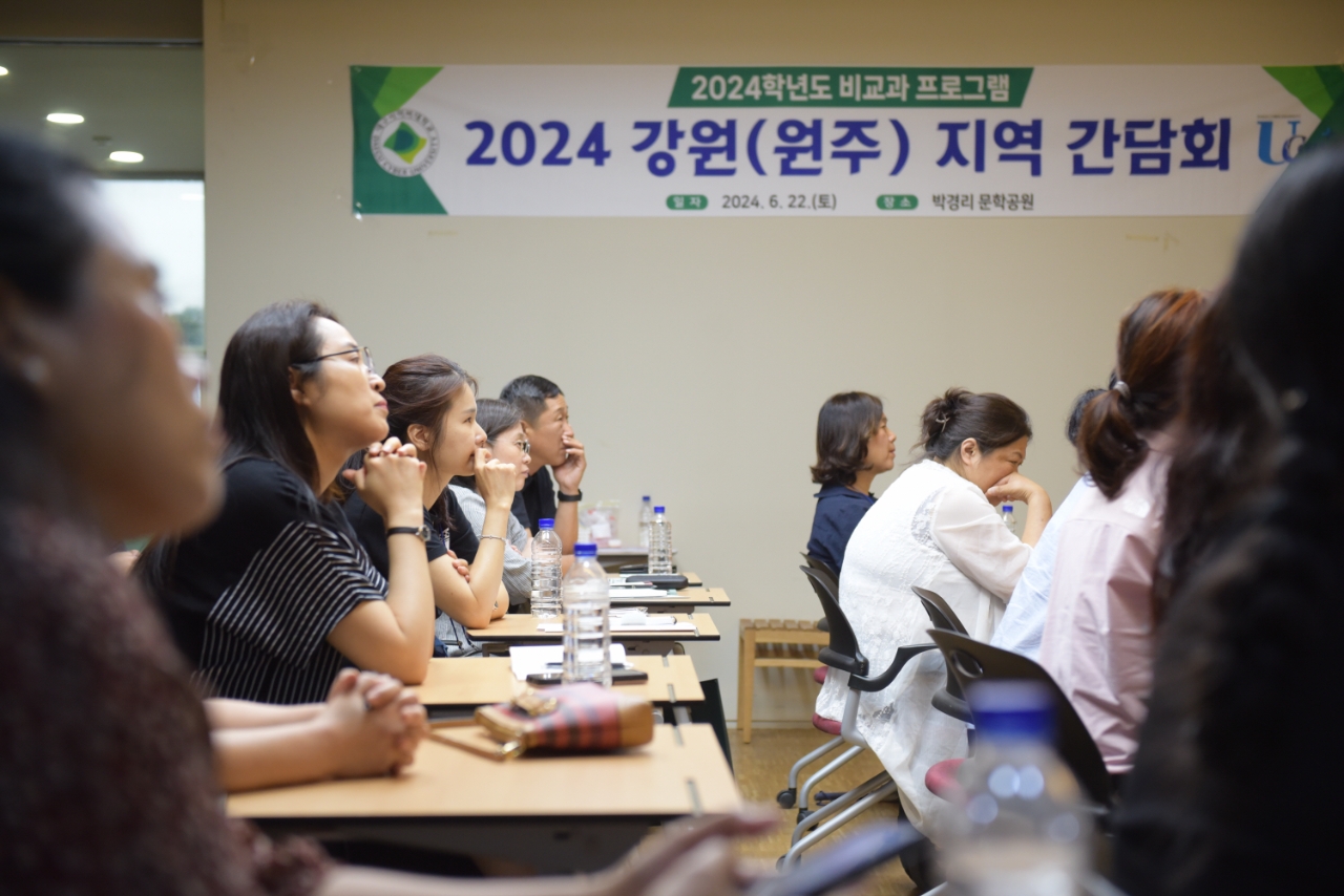 이근용 총장은 인사말에서 “개교 이래 강원 원주지역에서는 처음 개최하는 지역간담회여서 더욱 의미가 있다”며 “앞으로 강원지역의 학생들과의 소통을 더욱 강화하고 네트워크 형성을 위해 대학이 힘쓰겠다”고 의지를 밝혔다.
