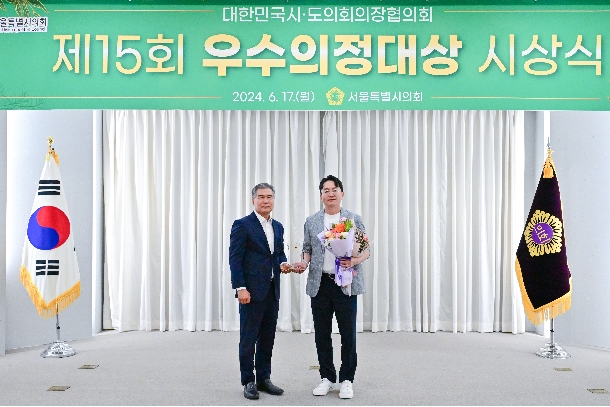 이미지 확대보기우수의정대상은 대한민국시도의회의장협의회가 지방자치 발전과 지역 발전에 이바지한 공로가 큰 의원들을 대상으로 심사를 통해 선정한다.