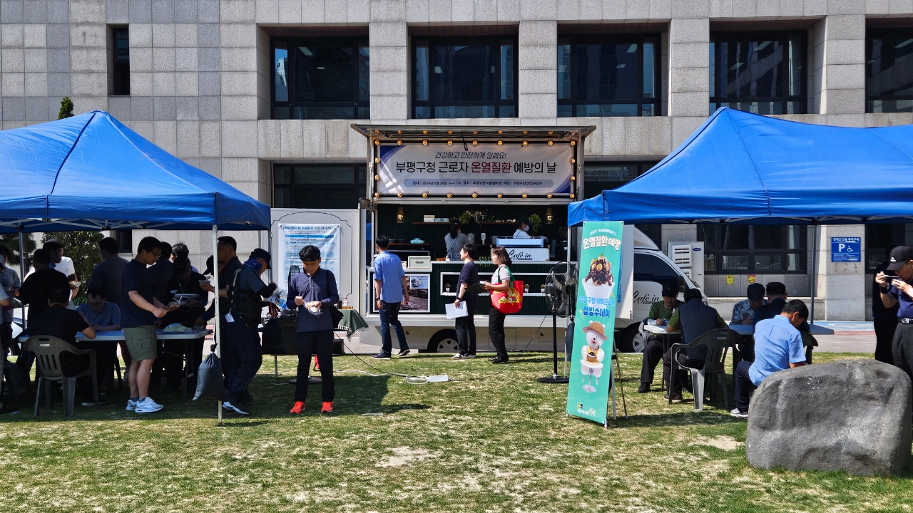 구청 야외 잔디광장(어울림마당)에서 열린 이날 푸드트럭 행사에서 구는 컵빙수를 제공하고, 푸드트럭에 ‘온열질환 자가진단표’를 게시하며 근로자들이 온열질환 관련 건강상태를 스스로 확인할 수 있도록 했다.