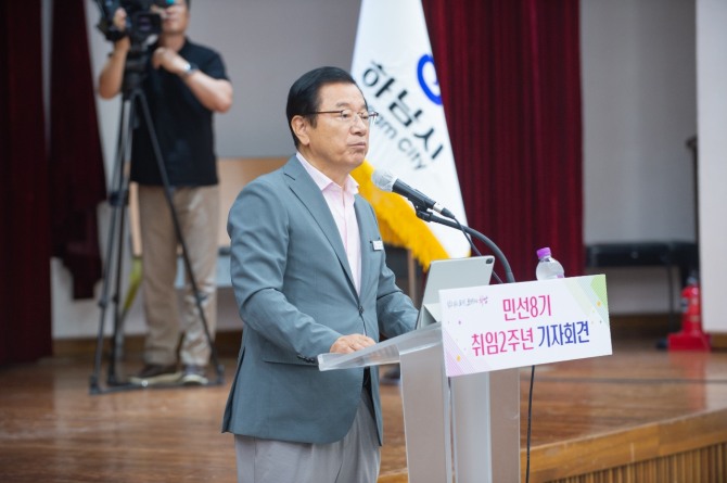 이미지 확대보기민선 8기 취임 2주년을 맞아 이현재 하남시장은 시청 대회의실에서 2일 기자회견을 열고 그간 주요 성과와 향후 과제를 발표했다.