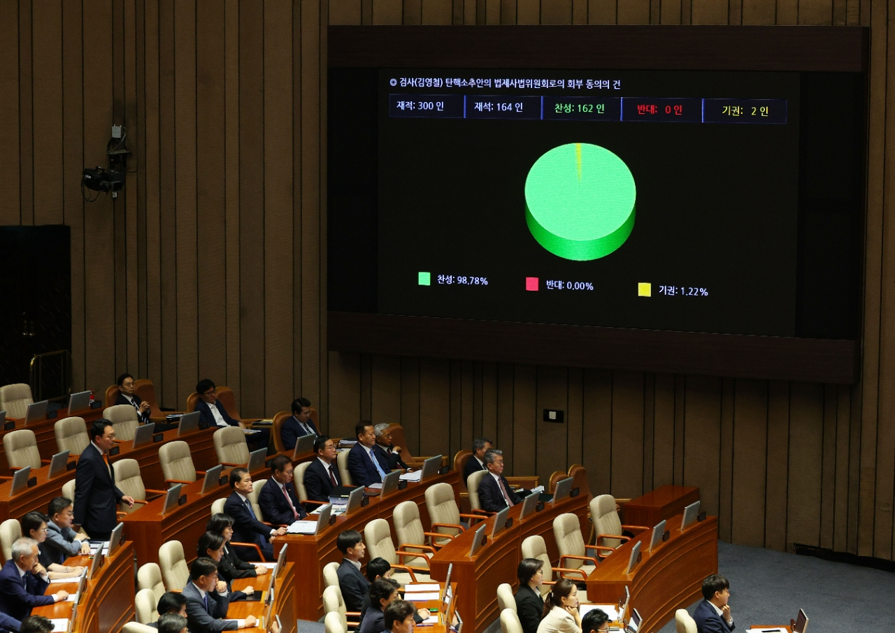 민주당은 전날 강백신·김영철·박상용·엄희준 검사에 대한 탄핵소추안을 국회 법제사법위원회에 회부했다. 이 가운데 강 검사와 엄 검사는 대장동·백현동 개발 비리 의혹을, 박 검사는 이화영 전 경기지사의 쌍방울 대북송금 의혹을 각각 수사한 바 있다.