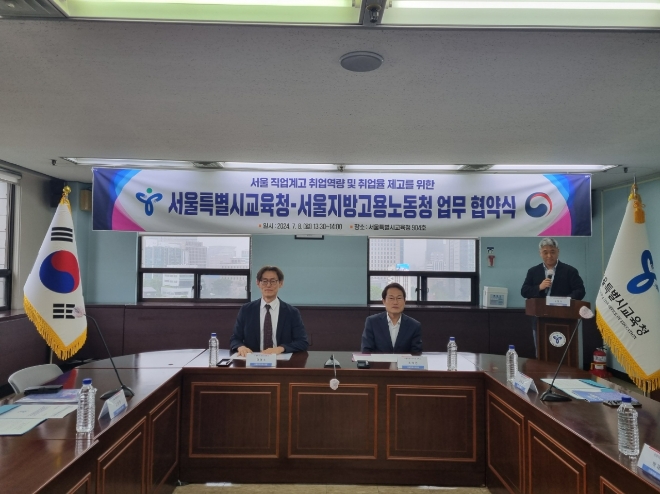 이미지 확대보기서울지방고용노동청과 서울시교육청은 8일 직업계고 45곳 재학생 대상 고용서비스 지원을 위한 업무협약을 맺었다.
