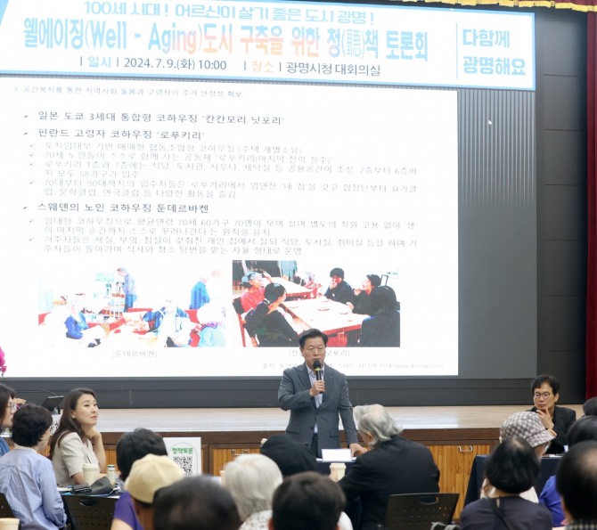 이미지 확대보기시는 지난 9일 시청 대회의실에서 ‘100세 시대, 어르신이 살기 좋은 도시 광명!! 웰에이징(Well-Aging) 도시 구축’을 주제로 올해 아홉 번째 청책토론회를 개최했다.