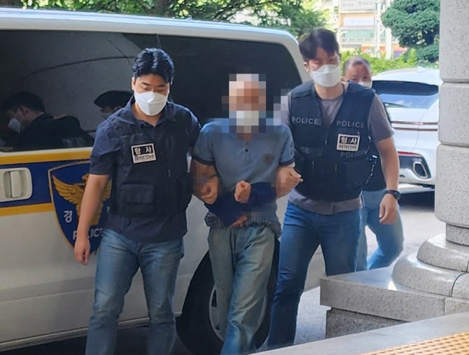 이미지 확대보기지하철 2호선에서 소형 공구를 손에 쥐고 승객들을 폭행한 혐의를 받는 50대 남성이 지난해 8월21일 서울 마포구 서부지방법원에서 열린 영장실질심사에 출석하고 있다. 사진=연합뉴스 서울지하철 2호선 열차 안에서 흉기를 휘둘러 재판에 넘겨진 50대 남성이 2심에서도 징역 2년을 선고받았다.