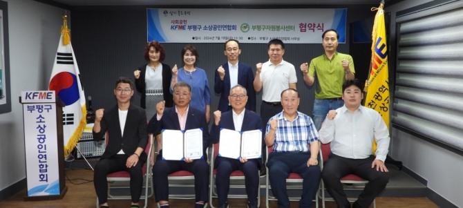 이미지 확대보기부평구 자원봉사센터와 부평구소상공인연합회는 지난 19일 나눔문화 확산 및 상생발전을 위한 협약을 맺었다.