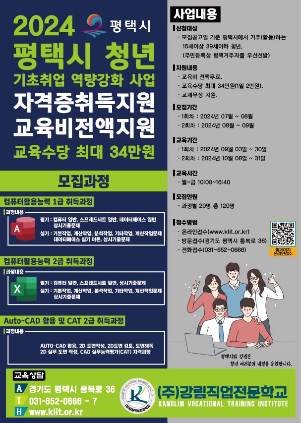 교육 신청 자격은 평택시에서 활동하는 15세 이상 39세 이하 미취업 청년이며, 주민등록지가 평택시인 청년을 우선 선발한다.