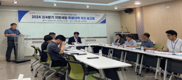 이미지 확대보기시는 2023년도 경제 실적악화로 인한 24년도 법인지방소득세의 대폭감소에 대응하고자 2024년 지방세입 종합대책을 수립하고 추진해왔으며, 세목별 징수율 제고와 신규 세원 발굴 등 다방면에서 지방세 세입 목표 달성에 매진하고 있다.