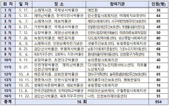 인천시는 올해 하반기 10여 차례의 박물관 및 미술관 투어 지원을 계획하고 있다. 사업 관련 내용은 인천박물관협의회 홈페이지에서 확인할 수 있으며, 참여를 희망하는 기관이나 단체는 인천광역시복지협의회와 인천시박물관협의회에 문의하면 된다.