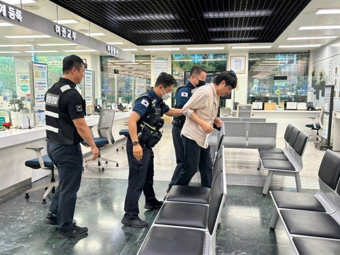 이미지 확대보기이번 훈련은 민원인의 폭언ㆍ폭행ㆍ기물파손 등의 상황을 가정해 ‘민원인의 위법행위 대응 지침’에 따른 단계별 훈련을 진행했다. 훈련 내용은 △민원인 진정 유도 △민원인 경고 및 위법행위에 대한 녹음ㆍ녹화 실시 △피해공무원 보호 및 방문 민원인 대피 △안전요원 호출 및 경찰 신고 △경찰 인계 등으로 이뤄졌다.