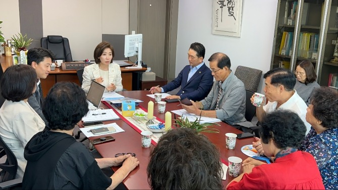 이미지 확대보기이날 간담회에는 김태수 주택공간위원회 위원장, 나경원 국회의원, 이희원 서울시의원(국민의힘, 동작구 4)과 김장수 서울시 건축기획관 및 전기현 동작구 도시교통국장이 참석해 사당동 일대에서 추진 중인 정비사업 현안들에 대해 논의를 했다.