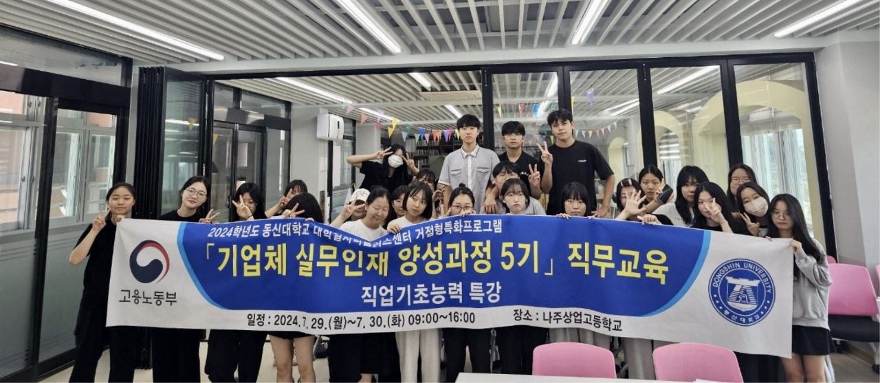 이미지 확대보기동신대 대학일자리플러스센터는 지난달 22일부터 26일까지 5일간 전남여자상업고등학교 3학년 재학생 38명을 대상으로 거점형특화 프로그램 4기 과정을 운영했다.