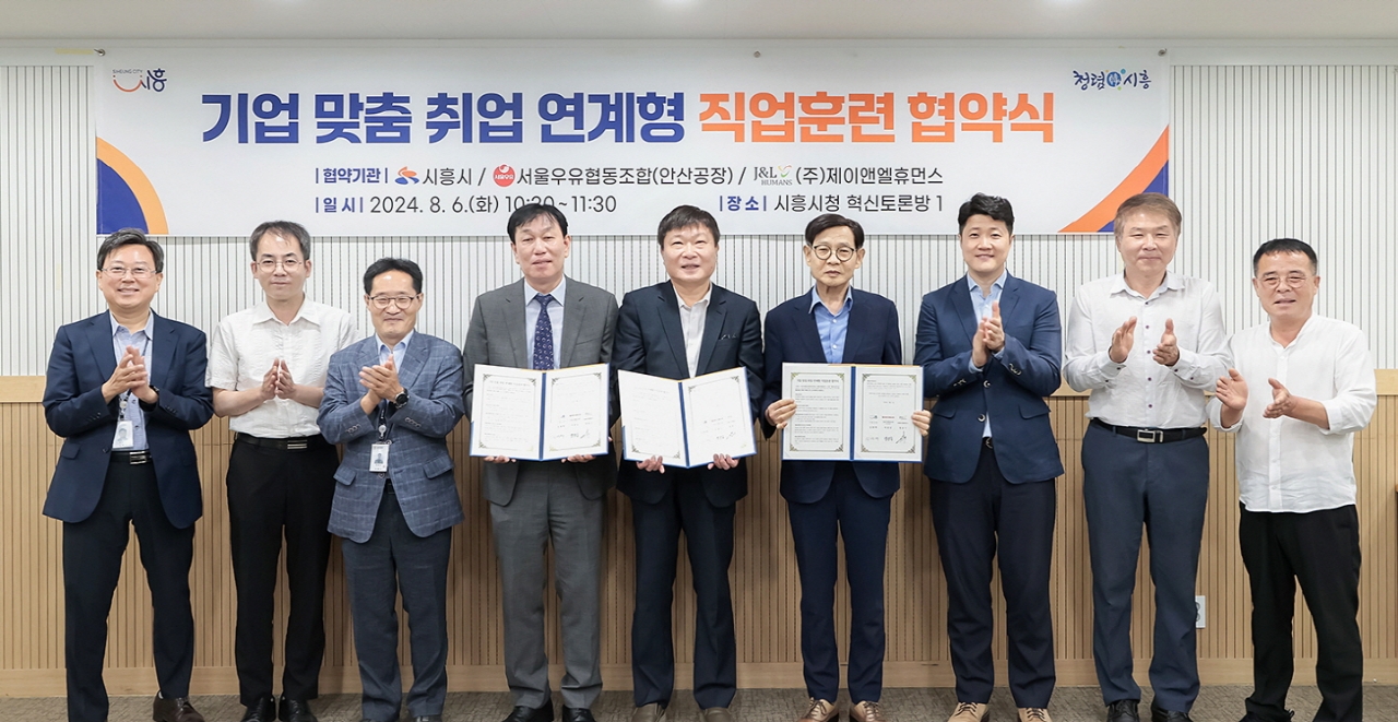 이미지 확대보기시청 혁신토론방에서 이뤄진 협약식에는 박승삼 시 부시장을 비롯해 박광심 서울우유협동조합 안산 총괄공장장, 정용기 ㈜제이앤엘휴먼스 회장 등이 참석했다. 이번 협약은 시가 제조 기반의 산업현장에서 다양한 직무 인재를 양성해 산업현장의 흐름에 맞춰 양질의 일자리를 창출하기 위해 마련됐다.