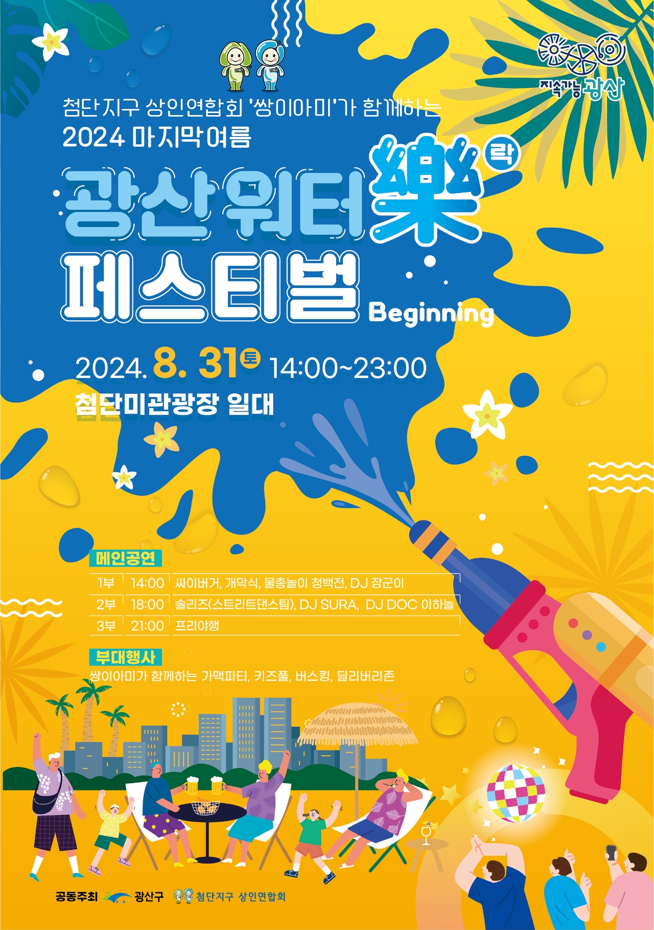 이미지 확대보기무더위에 지친 시민이 가까운 도심에서 시원하게 즐기며 지역상권에도 활력을 불어넣는 새로운 여름 축제로, 광산구와 첨단지구 상인연합회(회장 박형국)가 함께 기획하고 준비했다.
