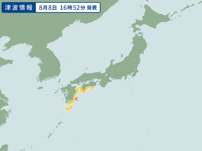 이미지 확대보기8일 요미우리 등 일본 현지 외신은 오후 4시 43분쯤 규슈 남부 미야자키현 앞바다를 진원으로 하는 지진이 발생했다고 보도했다.