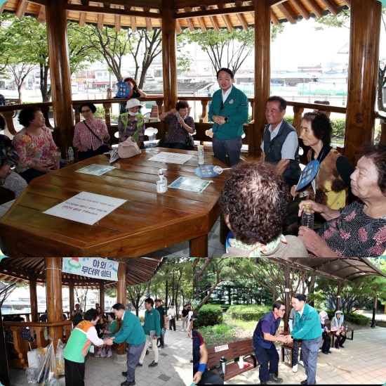 이미지 확대보기이번 현장점검은 최근 체감온도 33도가 넘는 폭염으로 힘들어하는 야외근로자, 고령 주민 등 폭염 취약계층의 애로사항을 직접 확인하고, 야외 무더위쉼터를 점검하고자 마련됐다.