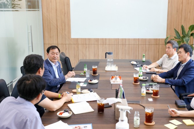 이미지 확대보기박태순 안산시의회 의장이 지난 14일 현장 간담회를 개최해 팔곡 산업단지 입주 기업인들의 애로사항을 청취하고 해법을 논의했다.