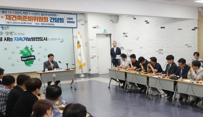 이번 간담회는 시가 재건축 정비계획 입안 제안을 준비과정에서 준비위원회가 겪는 어려움을 직접 듣고 행정적 지원 방안을 제시하는 자리였다. 간담회에는 하안주공 1~12단지, 철산주공 12~13단지, 철산KBS우성 아파트 15개 단지의 준비위원회 위원 40여 명이 참석했다.