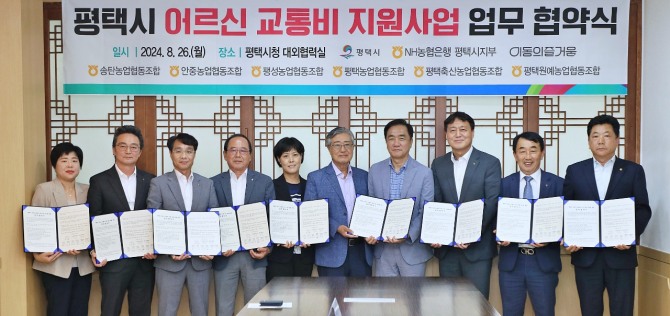 이날 협약식은 시청 대외협력실에서 평택시장과 농협은행 평택시지부장 및 지역농축협 조합장, 이동의즐거움 대표 등이 참석했다.