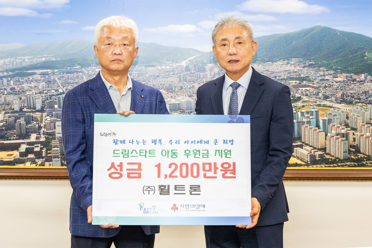 이번 기탁식은 휠트론이 8월부터 드림스타트 취약계층 아동이 건강하고 행복하게 자랄 수 있도록 매월 100만 원(연간 1200만 원)을 계양구에 기탁하고자 마련됐다.