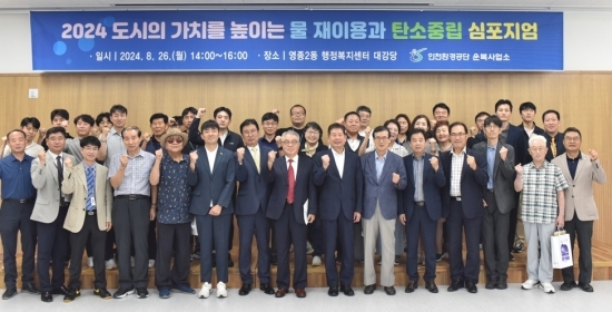 이미지 확대보기이번 심포지엄은 ‘도시와 물 재이용, 그리고 탄소중립’ 이라는 주제로 환경자원으로서 하수처리수 재이용, 중수도 등 물 재이용의 저변확대와 탄소중립에 미치는 영향 등 전문가들의 의견을 수렴하여 물 재이용 활용 방안을 강구하기 위하여 마련한 자리로, 수자원 전문가 및 관계자 등 시민 200여 명이 참석하여 많은 관심 속에서 성황리에 마쳤다.