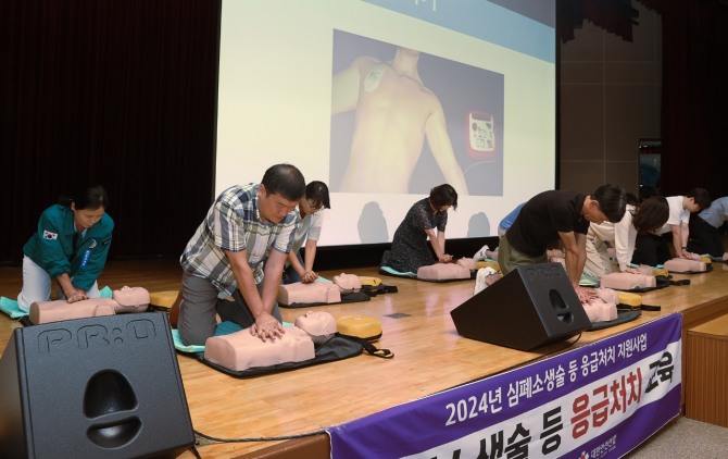 이번 교육은 응급상황 발생 시 신속하게 대응할 수 있도록 마련됐으며 (사)대한안전연합 강사가 심폐소생술 이론 및 실습, 일상생활 응급처치 요령, 자동심장충격기 사용법 등에 대해