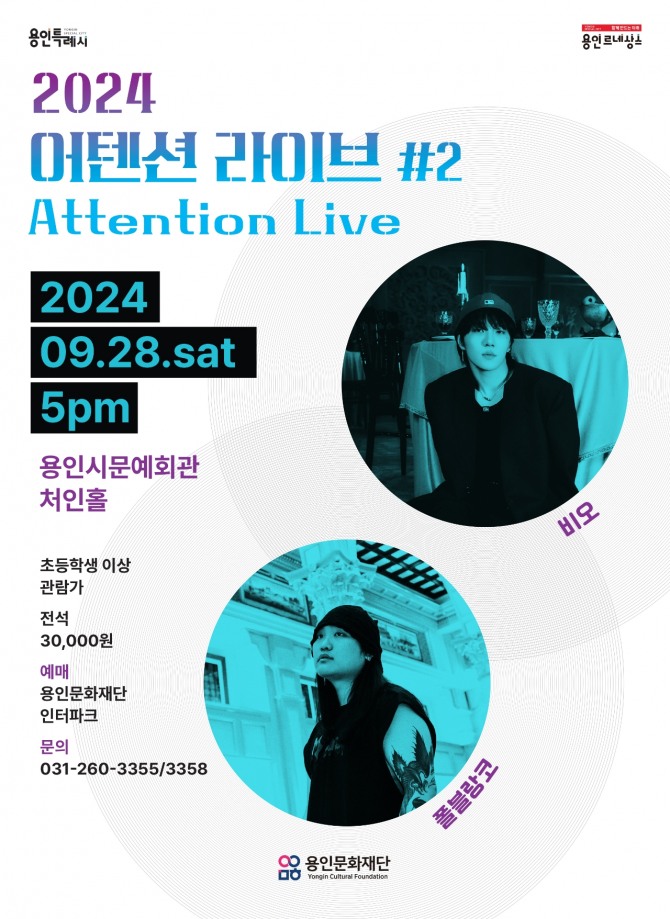 ‘2024 어텐션 라이브 #2’는 지난 4월 ‘카더가든’과 ‘디에이드’가 출연한 첫 번째 시즌에 이은 두 번째 시즌으로 이번 공연은 청년층의 두터운 인기를 끌고 있는 대세 힙합 래퍼 ‘비오(BE'O)’와 독보적인 감성 보이스를 자랑하는 ‘폴 블랑코(Paul Blanco)’의 수준 높은 힙합 무대로 마련되었다.