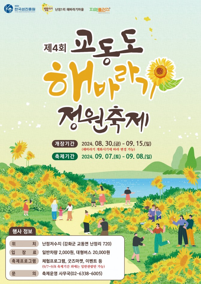 강화군은 교동면 난정리에 위치한 해바라기 정원을 오는 30일부터 오는 9월 15일까지 개장한다고 밝혔다.
