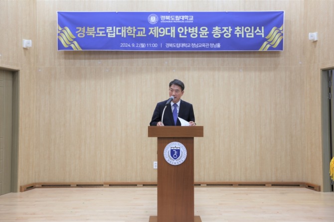 안병윤 총장은 취임사에서“바쁘신 일정에도 이 자리를 빛내 주신 분들께 깊이 감사드린다”며“고향의 대학인 경북도립대학교 총장으로 이 자리에 서게 되어 무한한 영광으로 생각한다”고 말했다.