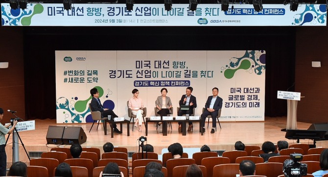 이미지 확대보기이날 컨퍼런스는 오는 11월 미국 대선에 대비해 해리스 후보와 트럼프 후보의 주요 정책을 분석하고, 대선 결과가 경기도 산업에 미칠 영향과 대응 방안을 모색하기 위해 마련됐다. 기업인과 스타트업 관계자 200여 명이 참석하는 등 높은 관심을 받았다.