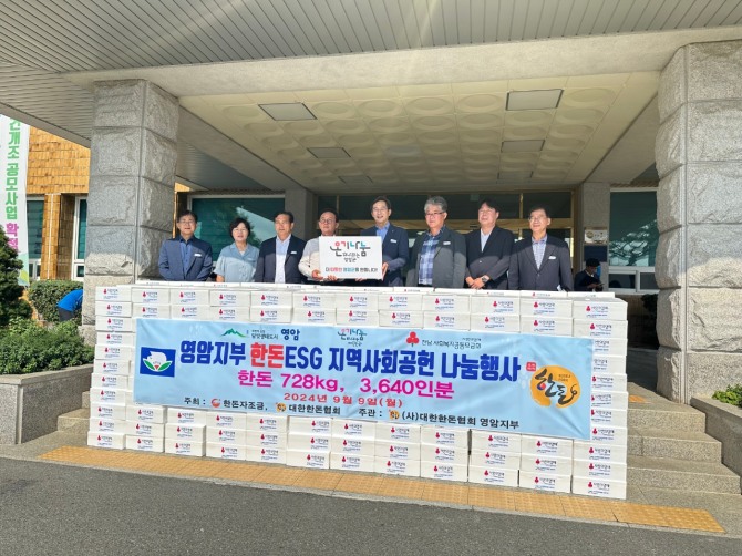 이미지 확대보기한돈협회 영암지회 추석 나눔. 사진=영암군 전남 영암군 금정면지역사회보장협의체(공동위원장 곽경애, 박은주)가, 9일 민족 대명절인 추석을 앞두고 소외계층 15가구에 식료품 및 생필품으로 구성된 ‘행복 꾸러미’를 전달하고 안부를 확인했다.