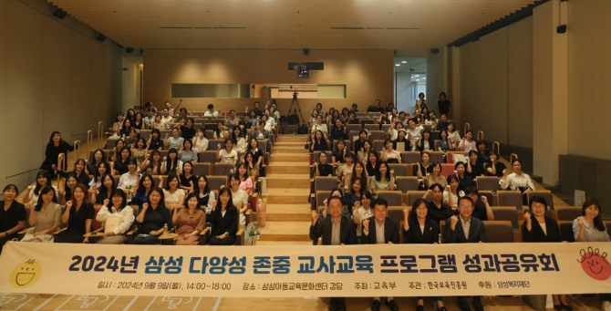 이미지 확대보기한국보육진흥원은 9일 오후 서울 용산구 삼성아동교육문화센터 강당에서 ‘삼성 다양성 존중 프로그램 교사교육 성과공유회’ 를 성공적으로 개최했다고 10일 밝혔다.