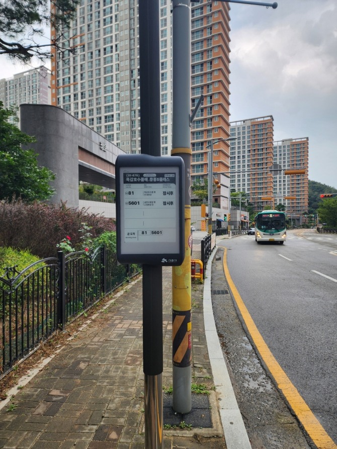 친환경 버스정보안내기는 태양광 에너지와 저전력 디스플레이인 전자종이(e-paper)를 활용해 폴 형식으로 설치됐으며, 100% 태양광 에너지로 태양광 충전 없이 30일 이상 서비스 운영이 가능하다. 이로써 장마철이나 야간에도 시민들에게 버스 도착 정보를 안정적으로 제공할 수 있다.