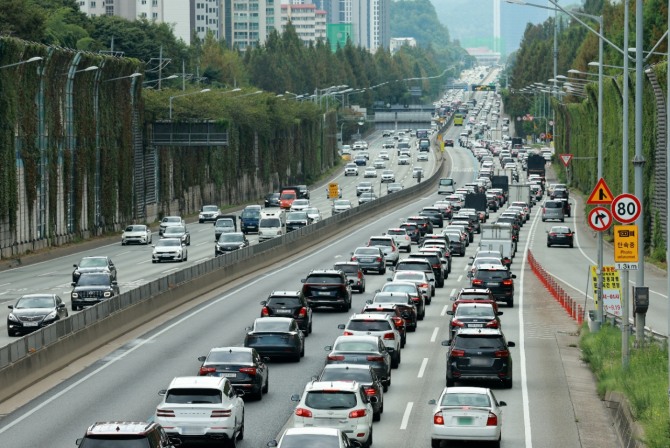 이날 전국 교통량 예상치는 534만대로, 수도권에서 지방으로 42만대, 지방에서 수도권으로 43만대가 이동할 것으로 전망됐다.