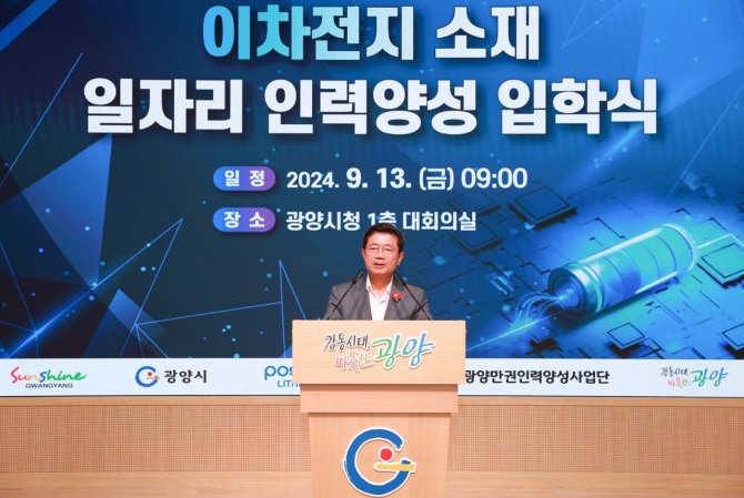 정인화 광양시장은 “취업을 준비하는 청년들에게 안정적인 일자리를 지원하기 위해 기업 및 지역사회와 협력해 이차전지 채용약정형 인력양성사업을 시작했으며, 작년에 교육 받은 100명 중 중 92명이 취업했다”라고 말했다.
