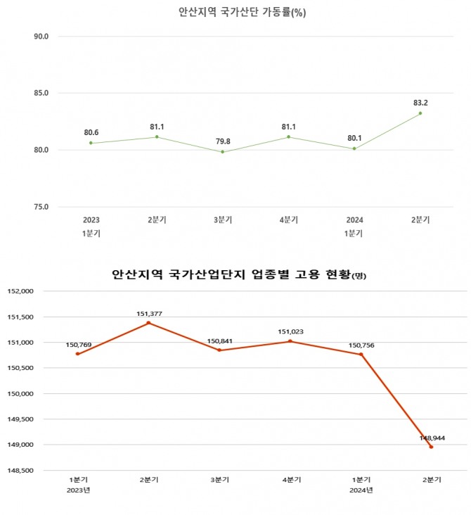 이미지 확대보기안산지역 국가산업단지의 2024년 2분기 가동률은 전분기 대비 3.1%p 상승한 83.2%(전국 평균 가동률 84.8%)로 조사됐다.