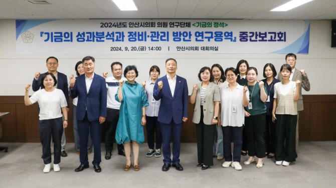 이미지 확대보기이날 의회 대회의실에서 열린 용역 중간보고회에는 기금의 정석 소속 박은경, 한명훈, 유재수, 황은화 의원과 안산시 기금 관련 부서 담당자, 용역사 관계자 등이 참석했다.