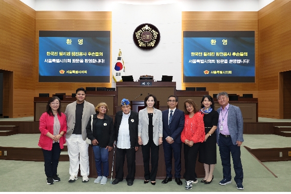 이미지 확대보기이숙자 운영위원장은 필리핀 한국전 참전군 19대대 창설 72주년 및 캠프티아노 필리핀 전투전적비 건립 72주년 기념행사 참석을 위해 한국을 방문한 필리핀 한국전 참전용사인 필릭스 미구엘과 그 가족·후손들을 서울시의회에 초청했다.