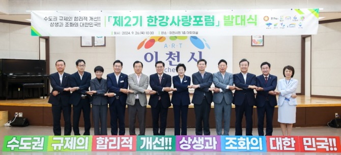 이미지 확대보기이날 발대식은 하남시를 비롯해 이천시, 용인시, 의왕시, 양평군, 가평군, 광주시, 여주시 8개 지자체장과 송석준, 김선교 국회의원 등이 참석해 40년 전 만들어진 ‘수도권정비계획법’으로 중첩 규제를 받는 과밀억제권역, 자연보전권역, 성장관리지역의 어려움을 공감했다.