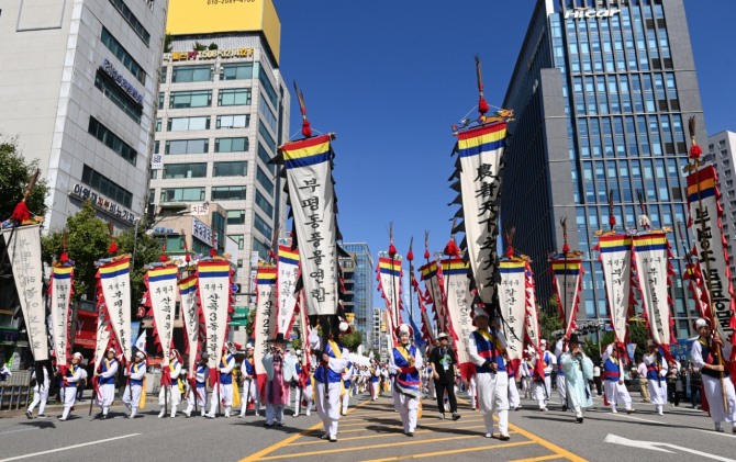 이미지 확대보기특히, 행사 마지막 날인 29일 대규모 풍물단과 축제에 참여한 공연 단체 등 1천여 명으로 구성된 ‘K-풍물 퍼레이드’는 신명나고 흥겨운 풍물가락 속에 참가자들 모두 열정적인 모습을 보이며 관람객으로부터 큰 환호를 받았다.