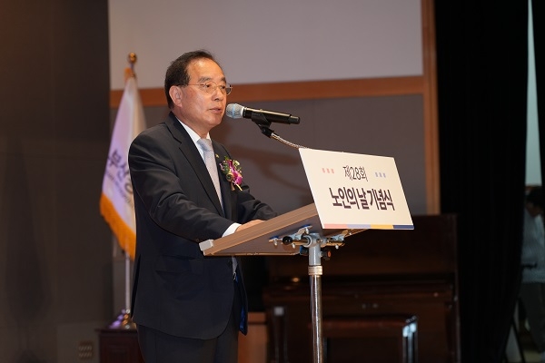이미지 확대보기부산시교육청에 따르면 2일 오전 10시 부산시청 1층 대강당에서 부산지역 어르신 등 700여명을 대상으로 개최된‘제28회 노인의 날 기념 행사’에 하윤수 교육감이 참석, “어르신들의 행복을 위해 우리 교육청도 힘을 보태겠다”고 강조했다고 밝혔다.