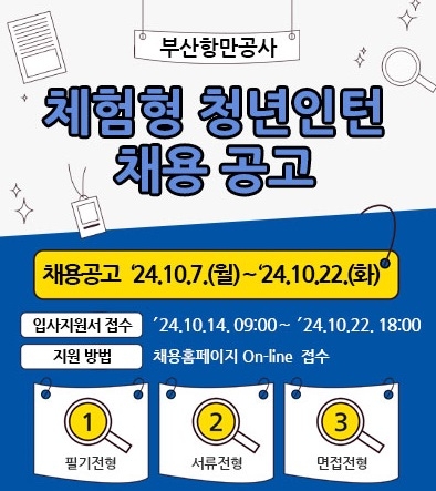 부산항만공사(BPA, 사장 강준석)는 청년층의 일 경험 확대 및 취업역량 강화를 지원하기 위해 2025년 상반기 체험형 청년인턴 15명에 대한 채용 절차를 진행한다고 8일 밝혔다.