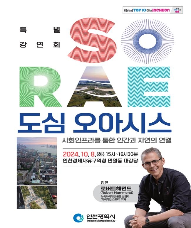 이번 강연은 소래습지와 인천의 글로벌 공원도시 조성 방향을 모색하기 위해 마련된 자리로, 특강은 뉴욕의 오래된 철길을 공원으로 재탄생시켜 주변 지역 경제를 활성화한 ‘뉴욕 하이라인 파크’의 공동설립자이자, 현재 테르메그룹 미국지사장인 로버트 해먼드가 맡았다.