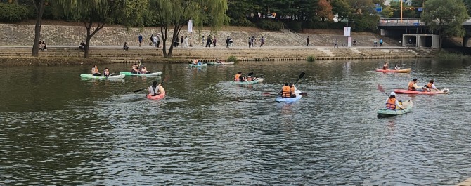 이번 행사는 성남시가 주최하고 성남문화재단이 주관하여 카약체험 프로그램을 계획하고 지난 12일과 13일 약 500m 구간 수심을 확보해 카약 30대를 띄웠다.