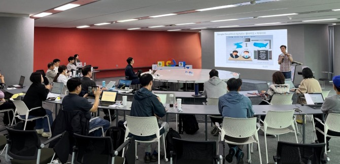 정태일 구글 클라우드 수석엔지니어는 첫 번째 강의에서 ‘AI와 구글의 미래’를 사례 중심으로 설명했다. 그는 구글의 최신 AI 기술, 클라우드 서비스 트렌드와 이를 통한 산업 혁신 가능성을 소개했으며, 특히 생성형 AI의 발전과 산업 변화 전망에 참가자들의 관심이 집중됐다.